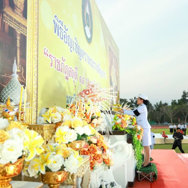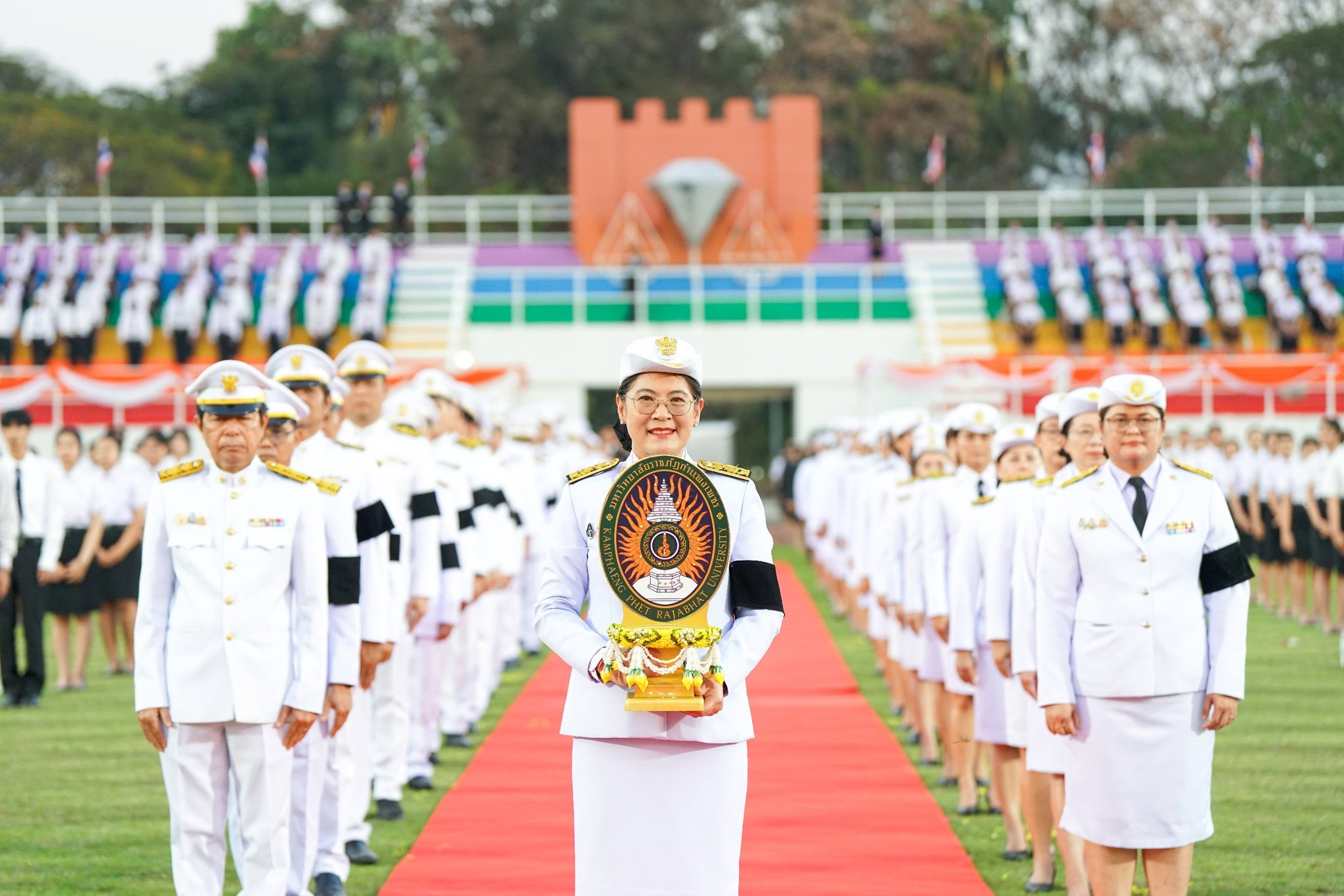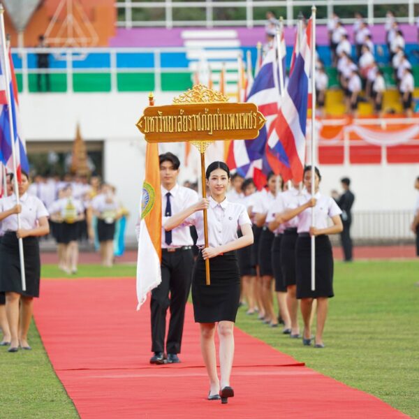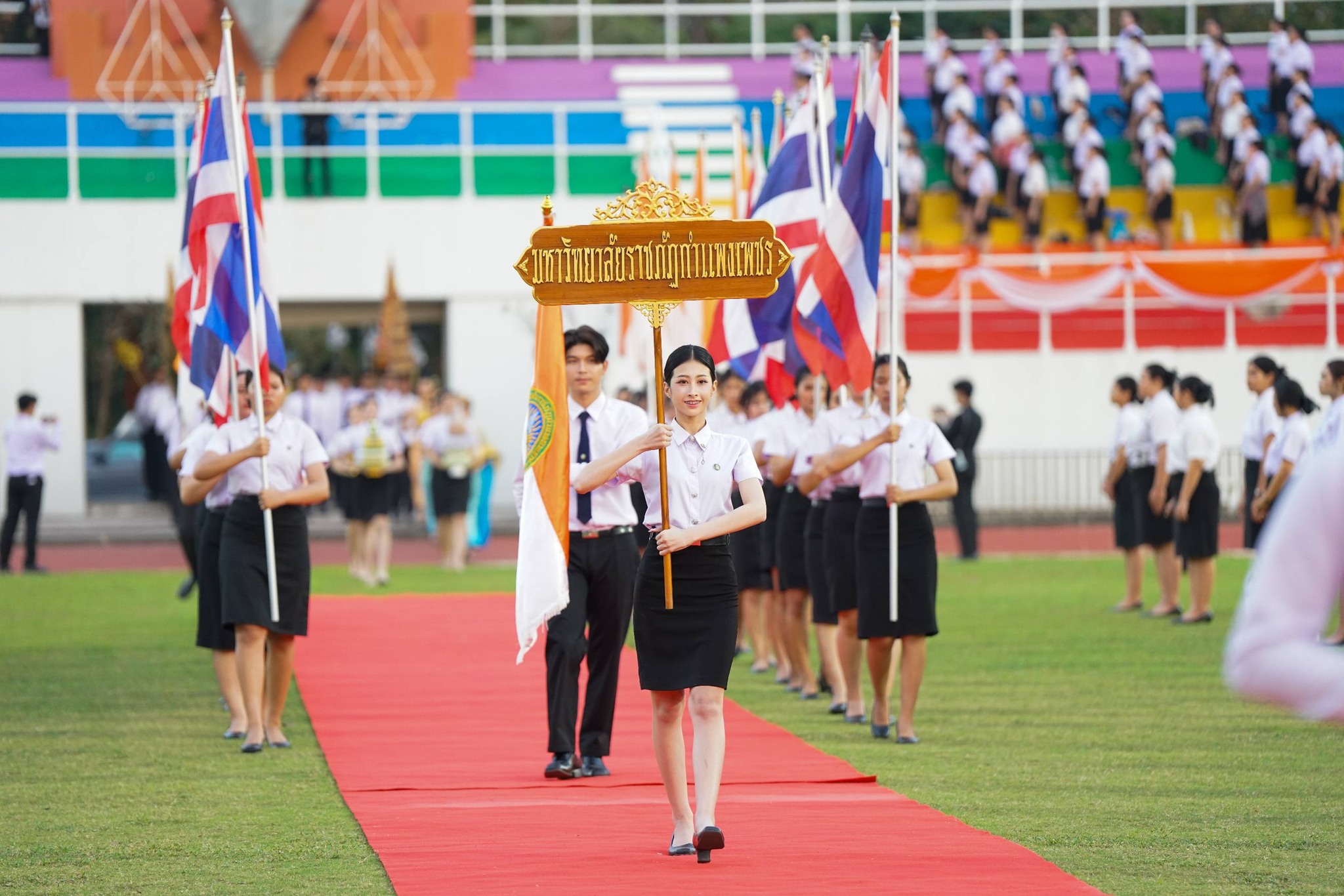 เมื่อวันที่ 13 กุมภาพันธ์ 2569 ผศ.ดร.ปรียานุช พรหมภาสิต อธิการบดีมหาวิทยาลัยราชภัฏกำแพงเพชร พร้อมด้วยผู้บริหาร บุคลากร และนักศึกษา เข้าร่วมพิธีอัญเชิญตราพระราชลัญจกร วันพระราชทานนาม “ราชภัฏ” ประจำปี 2569 เพื่อน้อมรำลึกในพระมหากรุณาธิคุณพระบาทสมเด็จพระบรมชนกาธิเบศรมหาภูมิพลอดุลยเดชบรมนามถบพิตร ณ สนามกีฬากลาง มหาวิทยาลัยราชภัฏกำแพงเพชร