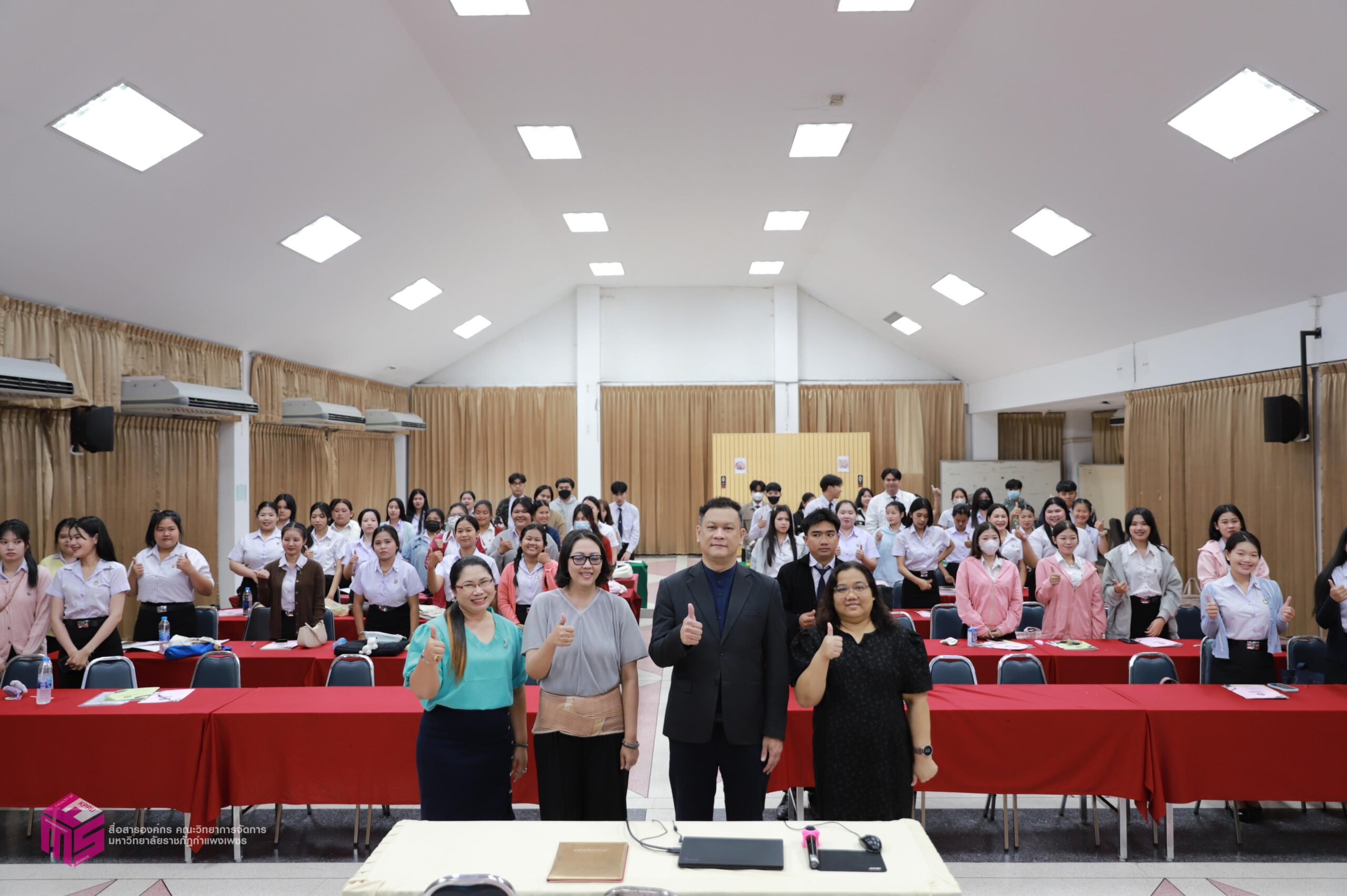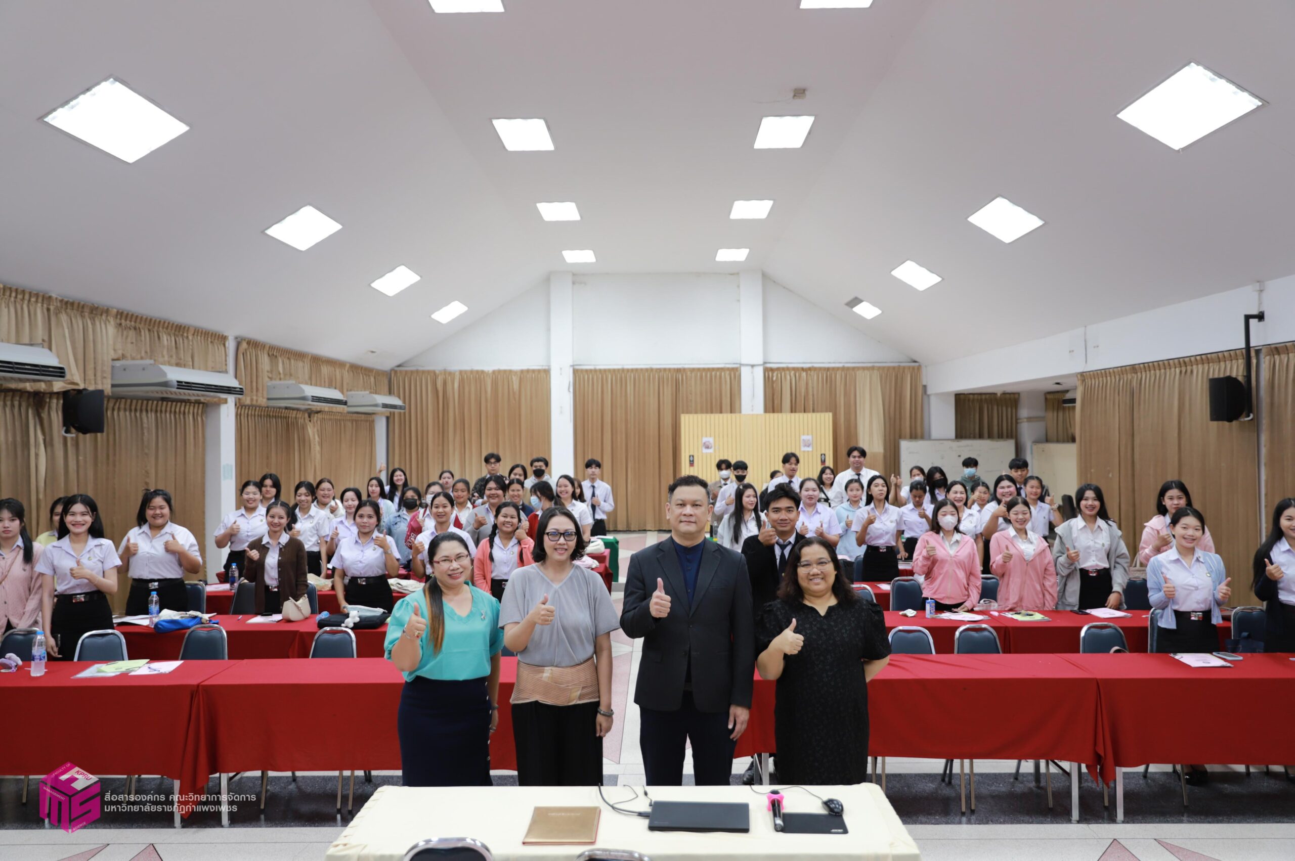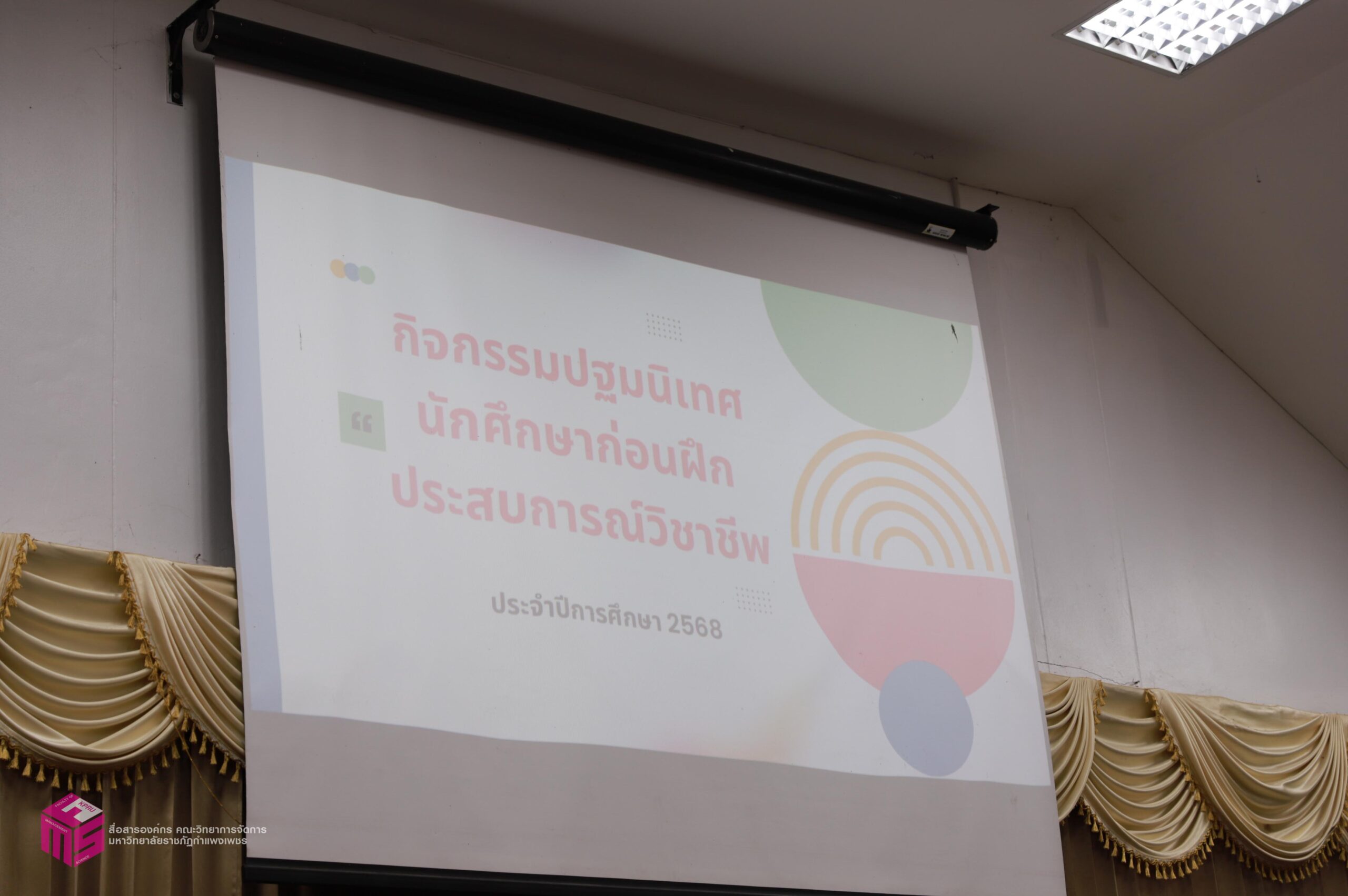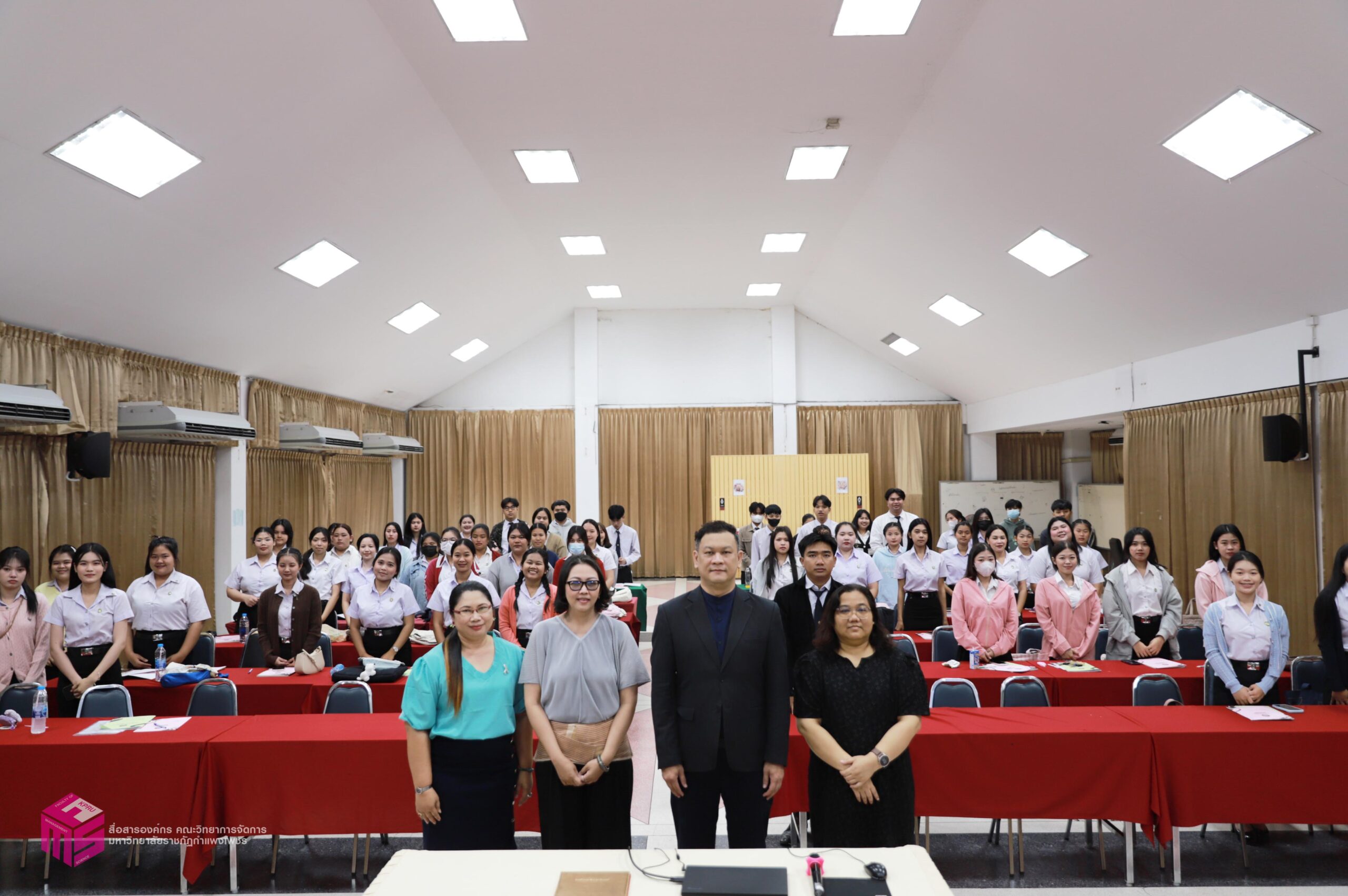 วันที่ 6 มีนาคม 2569 ผู้ช่วยศาสตราจารย์การันต์ เจริญสุวรรณ คณบดีคณะวิทยาการจัดการ เป็นประธานในพิธีเปิดกิจกรรมปฐมนิเทศนักศึกษาก่อนฝึกประสบการณ์วิชาชีพ เพื่อเตรียมความพร้อมก่อนการออกฝึกประสบการณ์วิชาชีพและการประกอบอาชีพเมื่อสำเร็จการศึกษา โดยมีอาจารย์ชลธิชา แสงงาม รองคณบดีฝ่ายกิจการนักศึกษาและศิลปวัฒนธรรม ชี้แจงเกี่ยวกับเอกสารก่อนออกฝึกงาน สร้างความเข้าใจในขั้นตอนการเขียนเอกสารฝึกงาน ณ ห้องประชุม ชั้น 1 คณะวิทยาการจัดการ มหาวิทยาลัยราชภัฏกำแพงเพชร