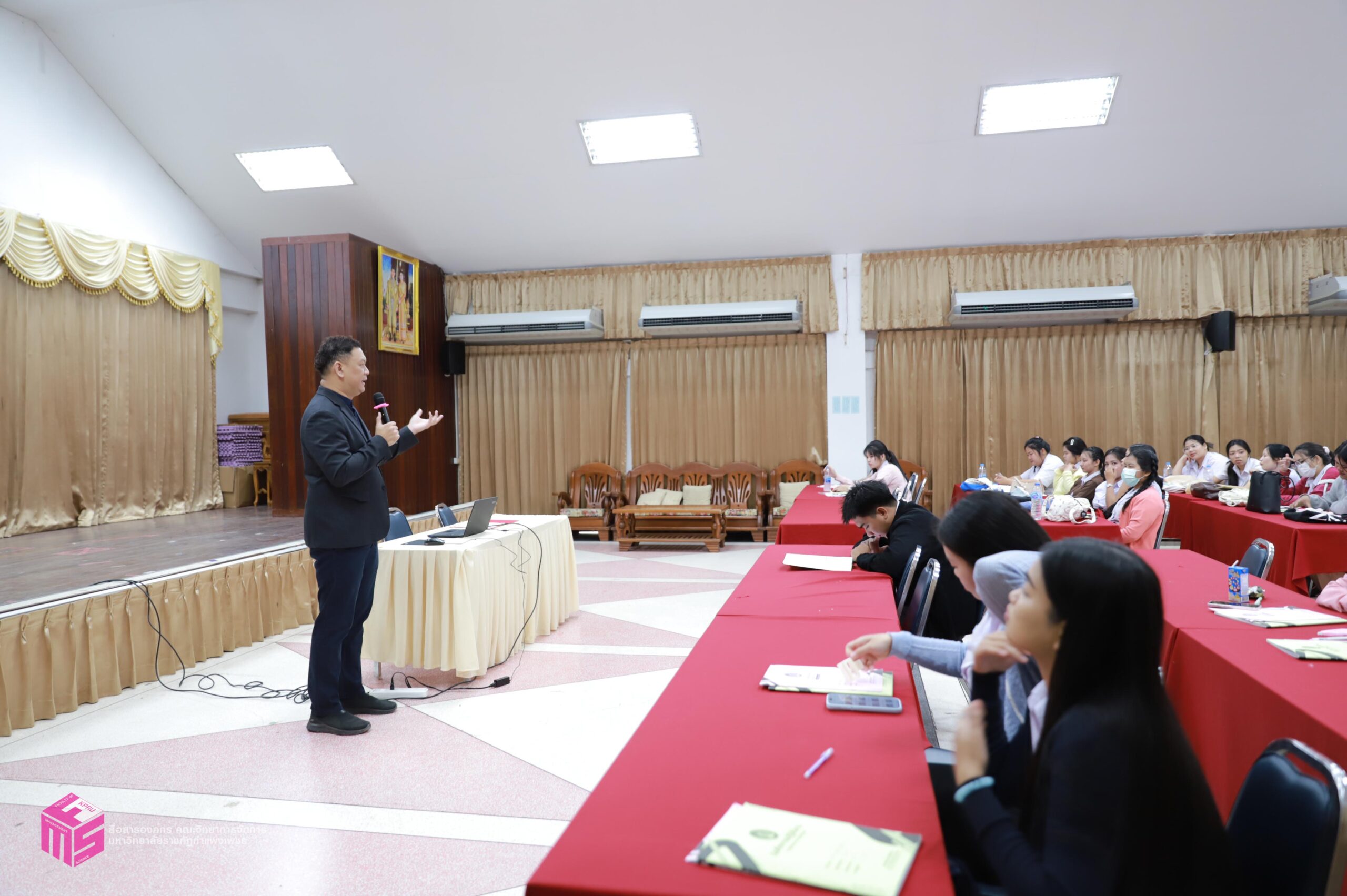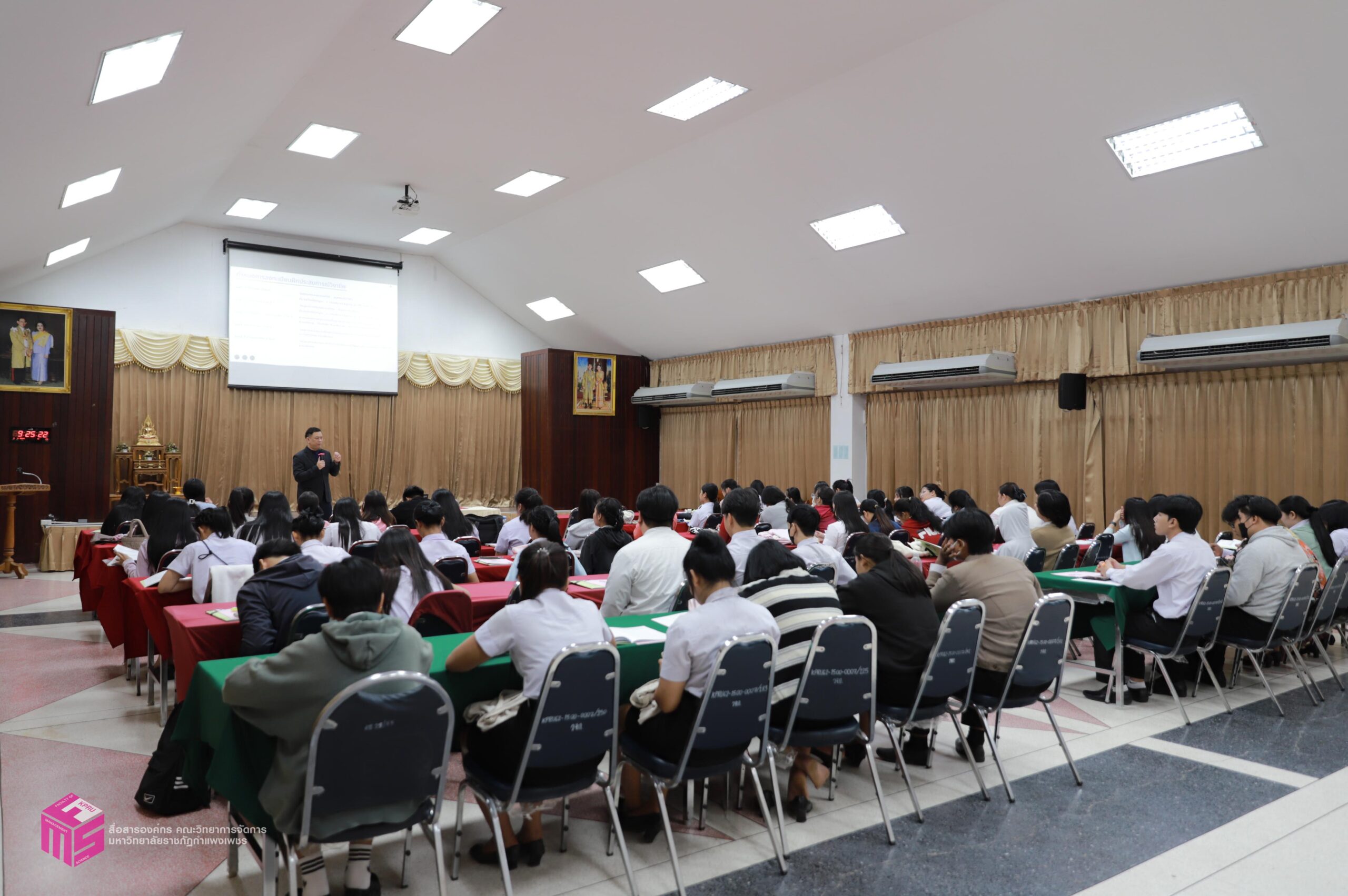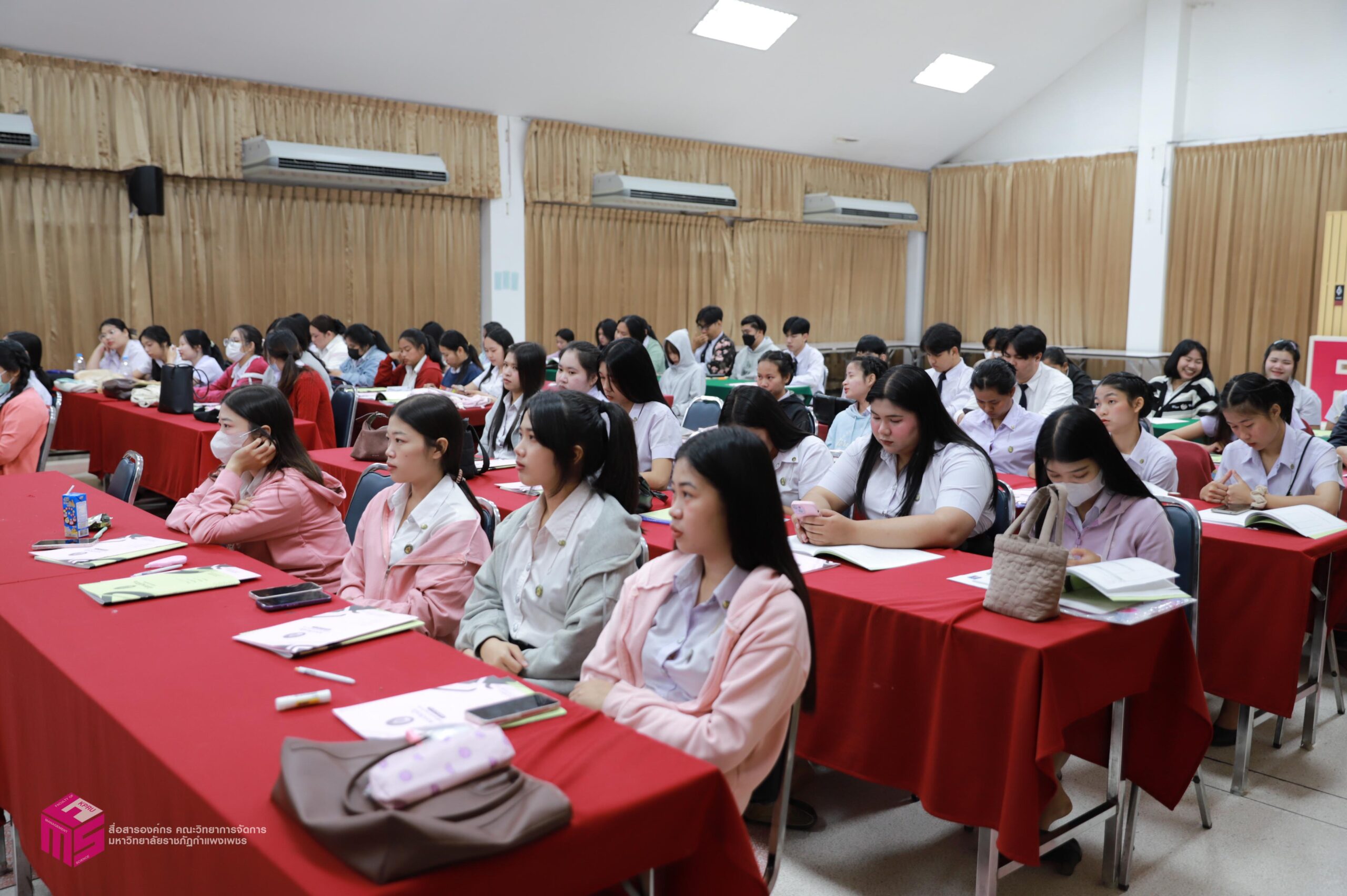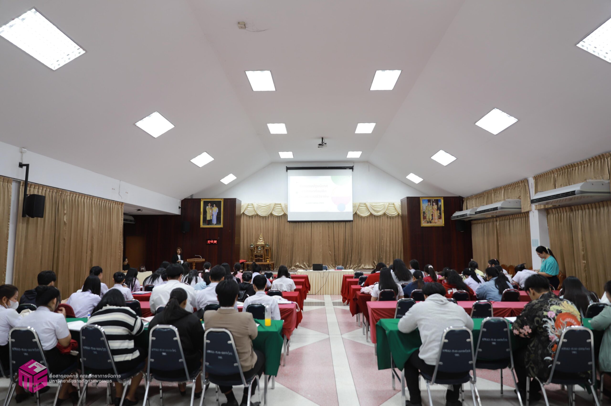 วันที่ 6 มีนาคม 2569 ผู้ช่วยศาสตราจารย์การันต์ เจริญสุวรรณ คณบดีคณะวิทยาการจัดการ เป็นประธานในพิธีเปิดกิจกรรมปฐมนิเทศนักศึกษาก่อนฝึกประสบการณ์วิชาชีพ เพื่อเตรียมความพร้อมก่อนการออกฝึกประสบการณ์วิชาชีพและการประกอบอาชีพเมื่อสำเร็จการศึกษา โดยมีอาจารย์ชลธิชา แสงงาม รองคณบดีฝ่ายกิจการนักศึกษาและศิลปวัฒนธรรม ชี้แจงเกี่ยวกับเอกสารก่อนออกฝึกงาน สร้างความเข้าใจในขั้นตอนการเขียนเอกสารฝึกงาน ณ ห้องประชุม ชั้น 1 คณะวิทยาการจัดการ มหาวิทยาลัยราชภัฏกำแพงเพชร