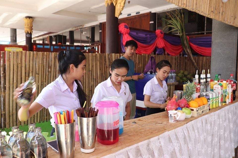 ตัวแทนนักศึกษาโปรแกรมวิชาการท่องเที่ยวและการโรงแรม คณะวิทยาการจัดการ มหาวิทยาลัยราชภัฏกำแพงเพชร นำโดย นายณัฐวุฒิ มีศรี นักศึกษาชั้นปีที่ 2 นางสาวโยษิตา รอดจันทร์ นางสาวนิลาวรรณ ทองคำ และ นางสาวนลพรรณ แซ่เอี้ย นักศึกษาชั้นปีที่ 1 ได้เข้ากิจกรรมออกร้านบริการเครื่องดื่มผสมไร้แอลกอฮอล์ ในงานวัดโขมงหัก อำเภอเมือง จังหวัดกำแพงเพชร ช่วงเทศกาลส่งท้ายปีเก่าต้อนรับปีใหม่ที่ผ่านมา ทั้งนี้เพื่อเป็นการฝึกประสบการณ์วิชาชีพฯ ธุรกิจ อาหารและเครื่องดื่ม ทางโปรแกรมวิชาการท่องเที่ยวและการโรงแรม ขอขอบคุณทางคณะผู้จัดงานที่ไว้วางใจให้นักศึกษาออกร้านฯ มา ณ โอกาส สนใจงานออกร้านติดต่อได้ทุกช่องทางฯ โทรศัพท์ 055-706-555 ต่อ 3590 ในวัน-เวลาราชการ