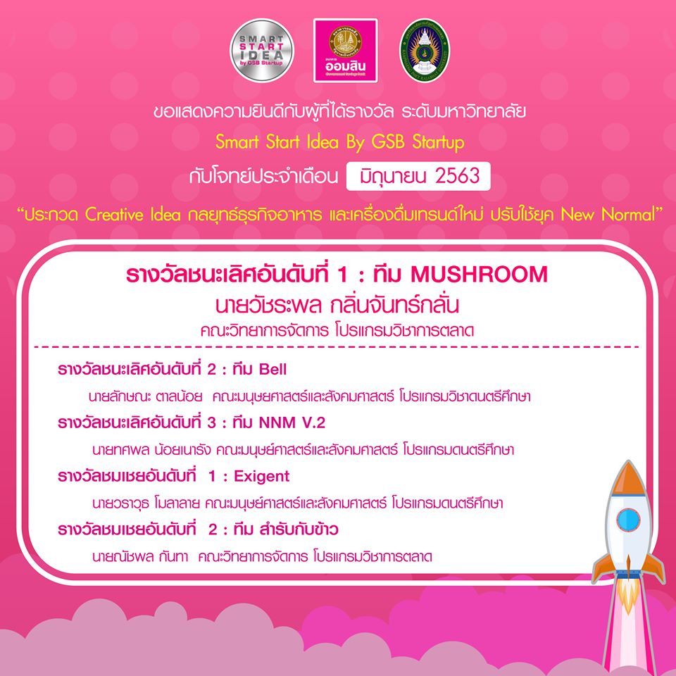 ขอแสดงความยินดีกับ…ตัวแทนนักศึกษาคณะวิทยาการจัดการ มหาวิทยาลัยราชภัฏกำแพงเพชร ที่ได้รับรางวัลจากการประกวดโจทย์ ท้าประลอง Idea WoW ประจำเดือนมิถุนายน 2563 “กิจกรรม ประกวด Idea สร้างสรรค์ Smart Start Idea by GSB Startup ภายใต้โจทย์ “Creative Idea กลยุทธ์ธุรกิจอาหาร และเครื่องดื่มเทรนด์ใหม่ ปรับใช้ยุค New Normal” โดยธนาคารออมสิน ร่วมกับมหาวิทยาลัยราชภัฏกำ