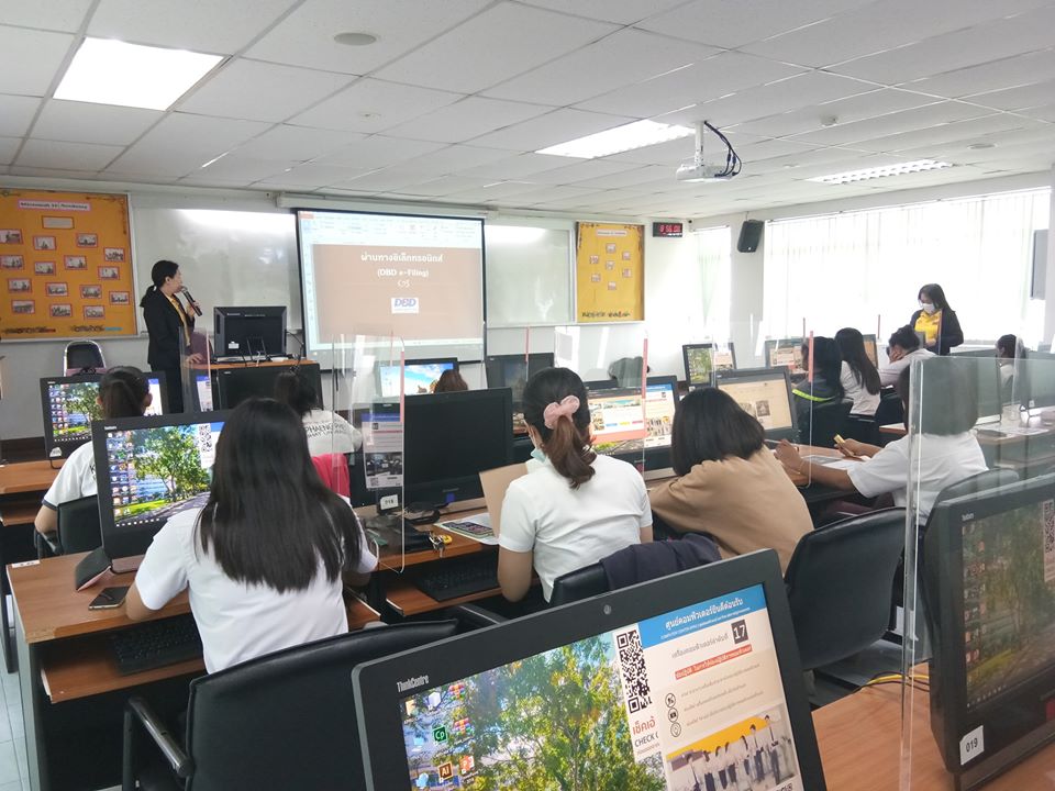 - วันที่ 31 กรกฎาคม 2563 อบรมในหัวข้อ… การฝึกอบรมเชิงปฏิบัติการในลักษณะสถานการณ์จำลอง : การนำส่งงบการเงินผ่านระบบ e-Fiting โดยวิทยากร คุณลฎาภา พรมชายขาว นักวิชาการพาณิชย์ชำนาญงาน และคุณฤดี ธำรงวีระชาติ เจ้าพนักงานการพาณิชย์ชำนาญงาน กองกำกับบัญชีธุรกิจ กรมพัฒนาธุรกิจการค้า และหัวข้อ ความรู้กฎหมายที่เกี่ยวข้องกับวิชาชีพบัญชีและงานบริการของกรม และทดสอบระบบ e-testing ณ ห้องปฏิบัติการคอมพิวเตอร์ ชั้น 9 อาคารศูนย์ภาษาและคอมพิวเตอร์ มหาวิทยาลัยราชภัฏกำแพงเพชร