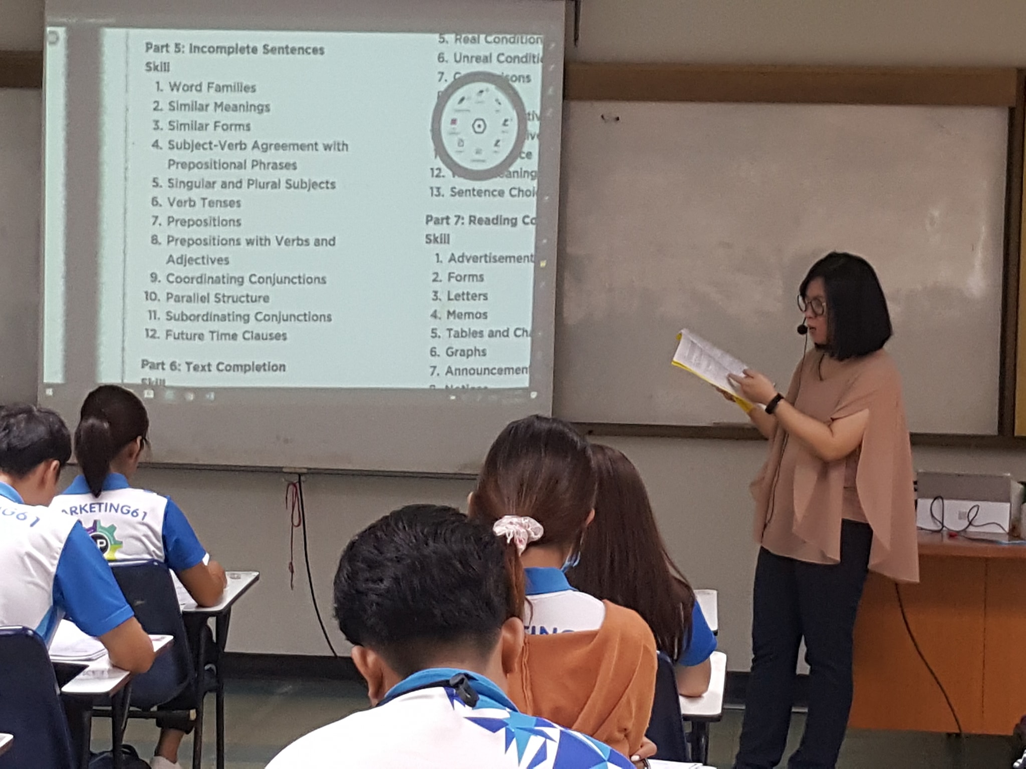 เมื่อวันที่ 22-23 สิงหาคม 2563 เวลา 08.30 น.เป็นต้นไป นักศึกษาโปรแกรมวิชาการตลาด คณะวิทยาการจัดการ มหาวิทยาลัยราชภัฏกำแพงเพชร เข้าร่วมอบรมพัฒนาทักษะภาษาอังกฤษ (TOEIC) ตามโครงการพัฒนาทักษะภาษาอังกฤษสำหรับนักศึกษาโปรแกรมวิชาการตลาด เพื่อเตรียมพร้อม และพัฒนาทักษะทางด้านภาษาอังกฤษให้ดียิ่งขึ้น ณ ห้องเรียน 11301 คณะวิทยาการจัดการ มหาวิทยาลัยราชภัฏกำแพงเพชร