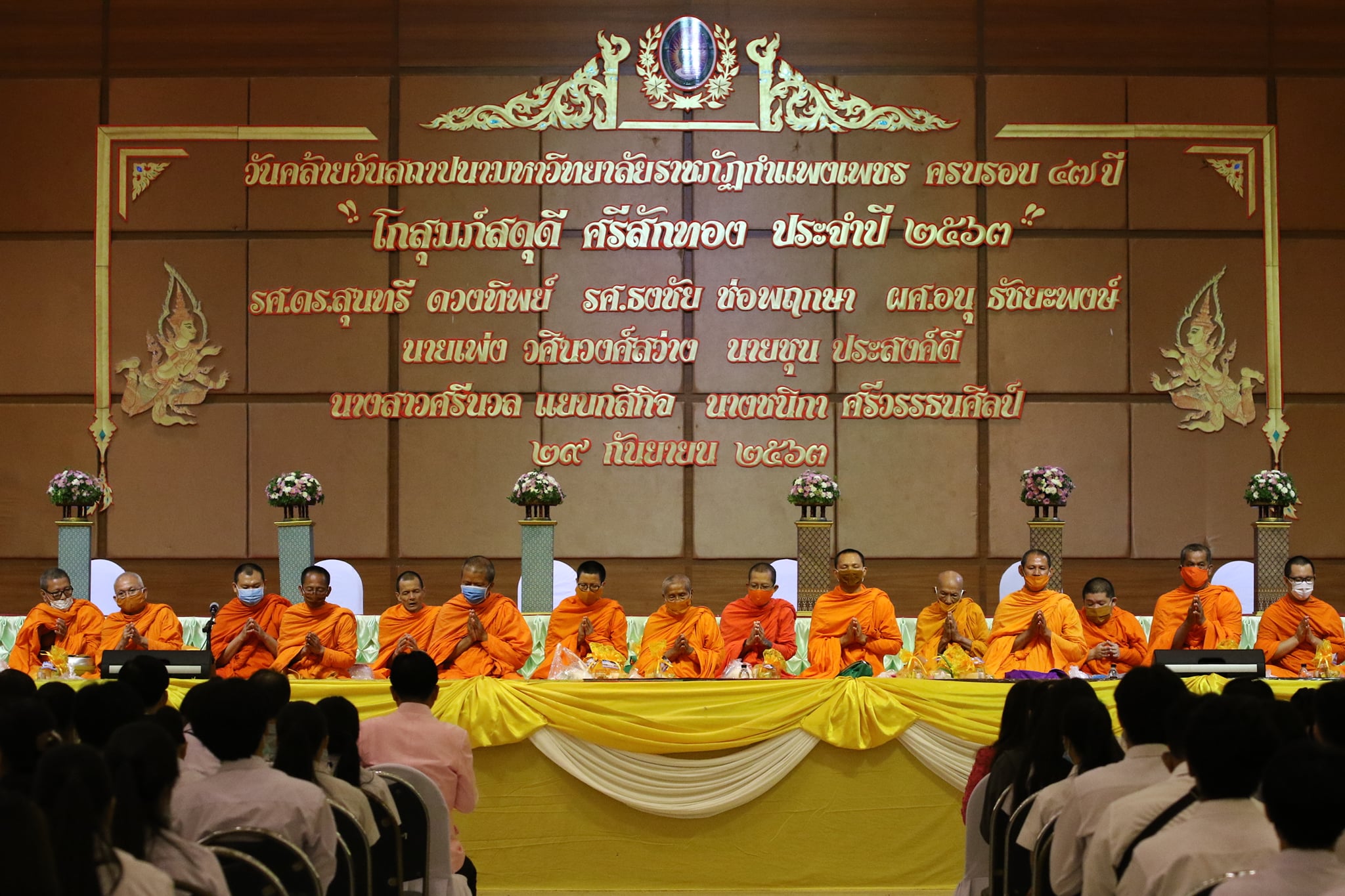 เมื่อวันที่ 29 กันยายน 2563 เวลา 07.30 น. บุคลากร และนักศึกษาคณะวิทยาการจัดการ มหาวิทยาลัยราชภัฏกำแพงเพชร ร่วมพิธีทำบุญเนื่องในวันคล้ายวันสถาปนามหาวิทยาลัยราชภัฏกำแพงเพชร “47 ปี คนของพระราชา ข้าของแผ่นดิน” โดยมีผู้ร่วมพิธีกว่า 500 คน ณ ห้องประชุมราชพฤกษ์ ชั้น 3 อาคารทีปังกรรัศมีโชติ มหาวิทยาลัยราชภัฏกำแพงเพชร ในเวลาต่อมา 08.30 น. ได้เข้าร่วมพิธีตักบาตรข้าวสารอาหารแห้ง โดยมีพระสงฆ์จำนวน 29 รูป เพื่อเสริมมงคลแก่มหาวิทยาลัย บุคลากร และนักศึกษา ณ บริเวณริมสระปลาบึก มหาวิทยาลัยราชภัฏกำแพงเพชร