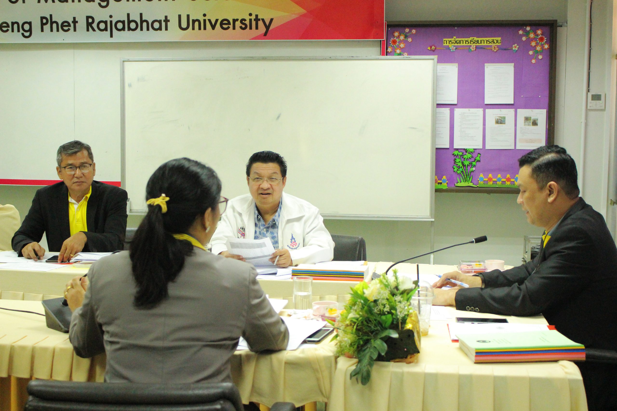 เมื่อวันที่ 5 ตุลาคม 2563 เวลา 13.30 น.เป็นต้นไป คณะวิทยาการจัดการ มหาวิทยาลัยราชภัฏกำแพงเพชร ได้ดำเนินการจัดประชุมคณะกรรมการประจำคณะฯ ครั้งที่ 3/2563 โดยมีผู้ช่วยศาสตราจารย์การันต์ เจริญสุวรรณ คณบดีคณะวิทยาการจัดการ เป็นประธานในการประชุม พร้อมด้วยผู้บริหาร กรรมการผู้ทรงคุณวุฒิ และหัวหน้าสำนักงานคณะวิทยาการจัดการเข้าร่วมประชุมในครั้งนี้ เพื่อรายงาน ติดตามการดำเนินงานของคณะวิทยาการจัดการ และนำข้อเสนอแนะไปปรับปรุง และพัฒนาคณะต่อไป ณ KM Room ชั้น 3 คณะวิทยาการจัดการ มหาวิทยาลัยราชภัฏกำแพงเพชร