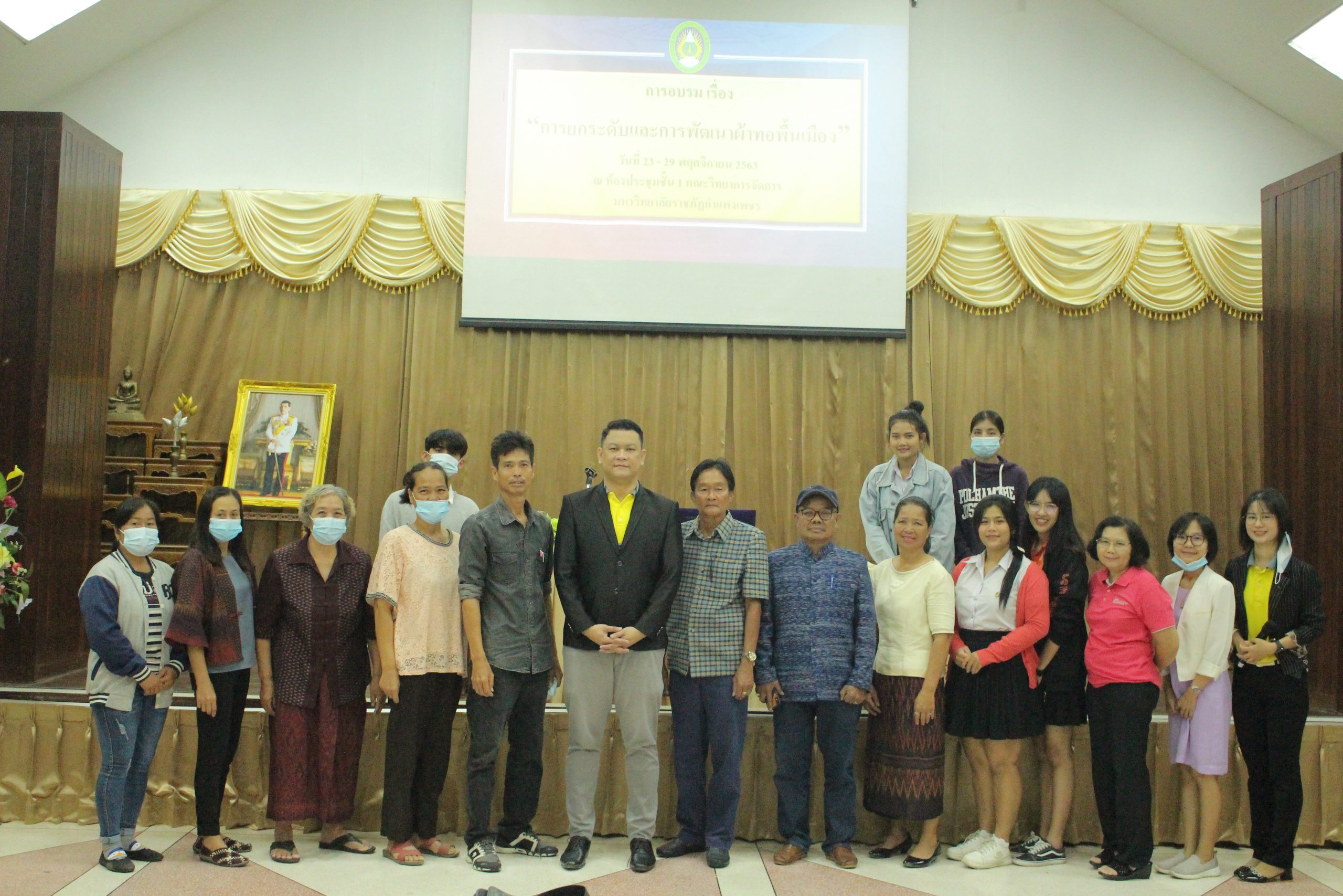 เมื่อวันที่ 23-29 พฤศจิกายน 2563 เวลา 08.30 น.เป็นต้นไป คณะวิทยาการจัดการ มหาวิทยาลัยราชภัฏกำแพงเพชร ได้ดำเนินการจัดการอบรมเชิงปฏิบัติการ ในหัวข้อเรื่อง “การยกระดับและการพัฒนาผ้าทอพื้นเมือง” ตามโครงการยกระดับผลิตภัณฑ์ชุมชน OTOP (กิจกรรมการพัฒนาผลิตภัณฑ์ชุมชนสู่การยกระดับสินค้า OTOP) ให้กับกลุ่มผลิตภัณฑ์ชุมชน เพื่อให้ผู้อบรมได้ทราบวิธีการ เทคนิคด้านการพัฒนาออกแบบผลิตภัณฑ์ลายผ้าทอและการทอผ้า และนำความรู้ ไปใช้ประโยชน์ต่อไป ณ ห้องประชุมชั้น 1 คณะวิทยาการจัดการ มหาวิทยาลัยราชภัฏกำแพงเพชร