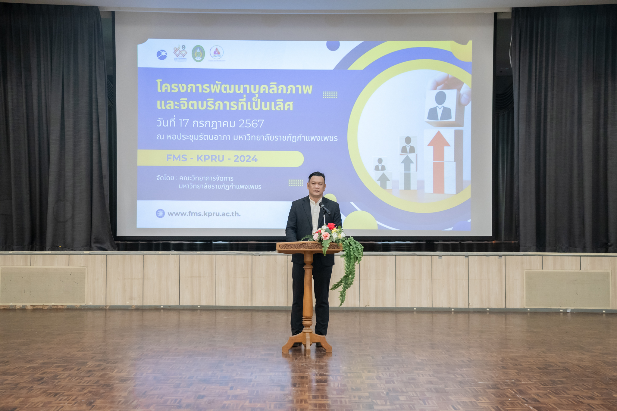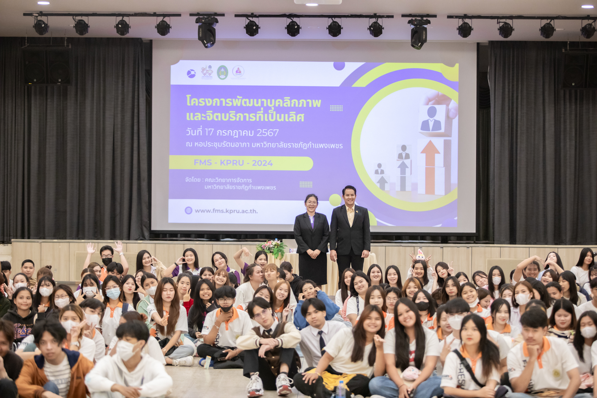 วันที่ 17 กรกฎาคม 2567 เวลา 12.30 น.เป็นต้นไป นักศึกษาคณะวิทยาการจัดการ มหาวิทยาลัยราชภัฎกำแพงเพชร ได้เข้าร่วมโครงการพัฒนาบุคลิกภาพและจิตบริการที่เป็นเลิศ โดยวิทยากร คุณกิตติศักดิ์ นิ่มลพ คุณภูกฤษ ปิติภิญญาพงษ์ และคุณพรทิพย์ พ่วงแตง ณ หอประชุมรัตนอาภา มหาวิทยาลัยราชภัฏกำแพงเพชร