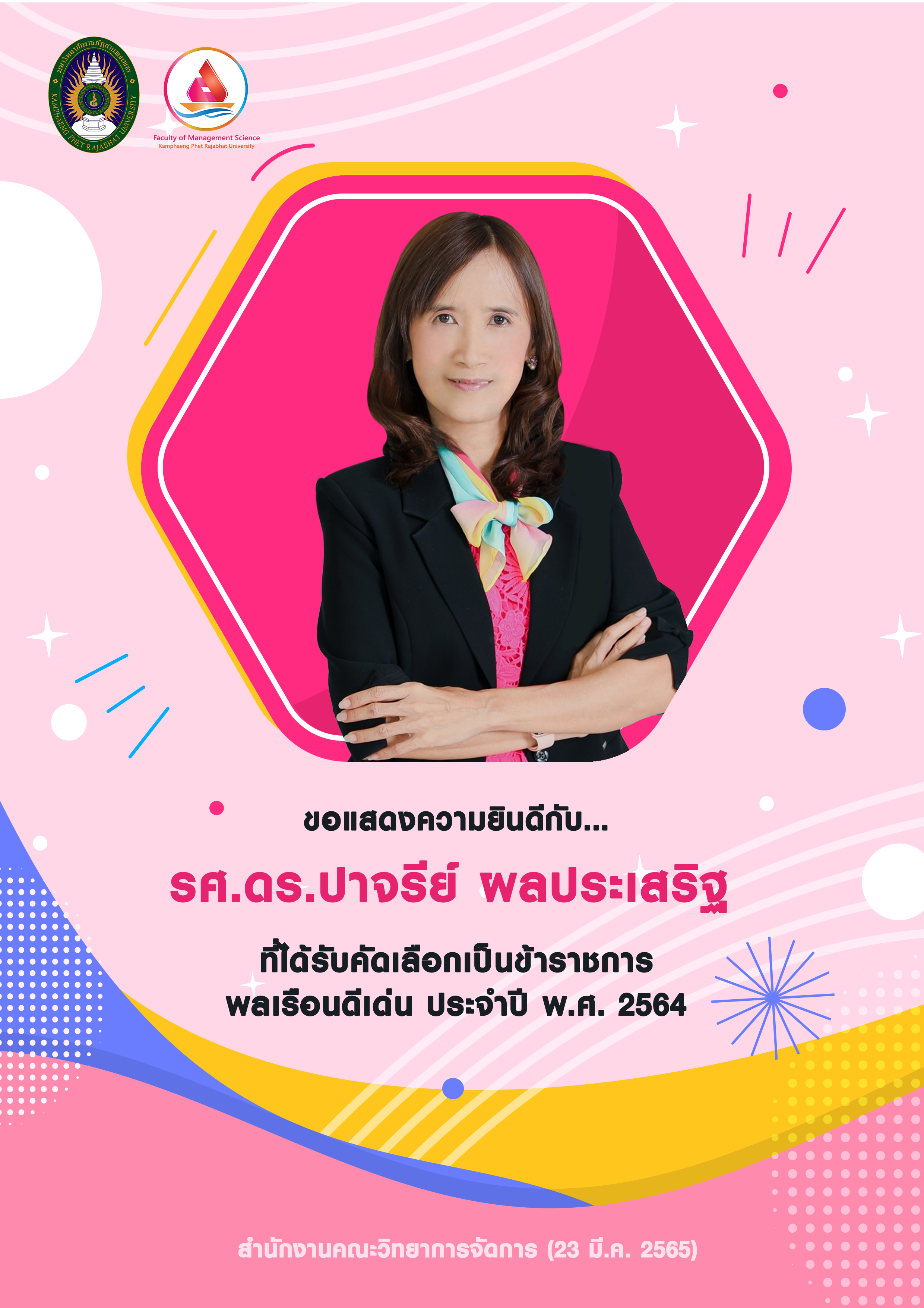 ขอแสดงความยินดีกับ… รองศาสตราจารย์ ดร.ปาจรีย์ ผลประเสริฐ ที่ได้รับคัดเลือกเป็นข้าราชการพลเรือนดีเด่น ประจำปี พ.ศ. 2564