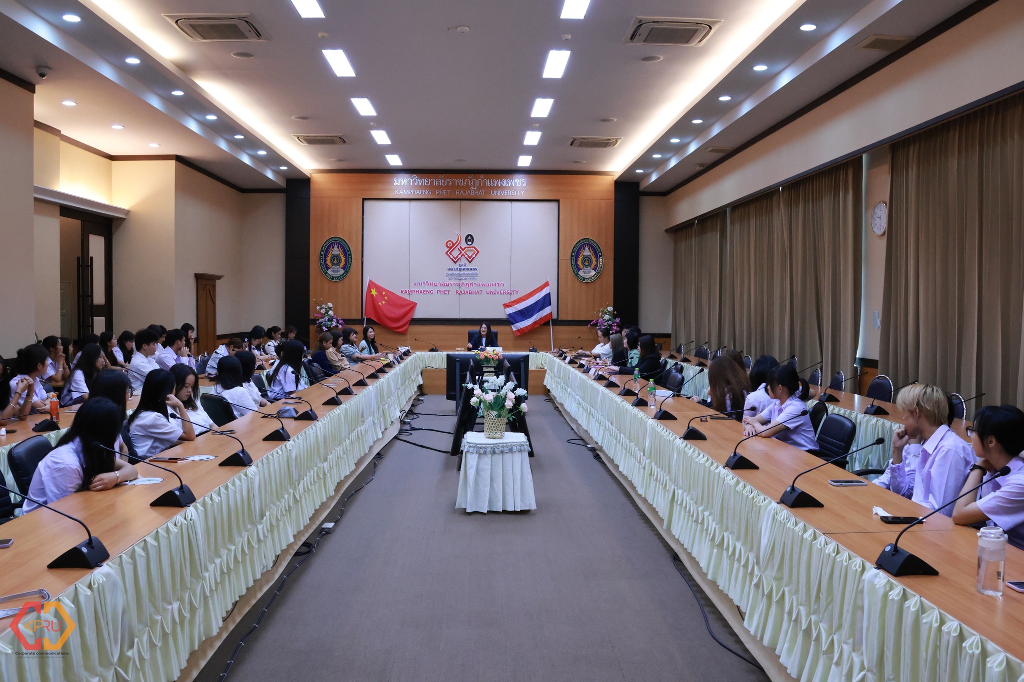 วันที่ 4 กันยายน 2567 ผู้ช่วยศาสตราจารย์การันต์ เจริญสุวรรณ คณบดีคณะวิทยาการจัดการ มหาวิทยาลัยราชภัฏกำแพงเพชร ได้เข้าร่วมพิธีเปิดกิจกรรมปฐมนิเทศนักศึกษาต่างชาติที่มาจากวิทยาลัยอาชีวศึกษาและเทคนิคสิบสองปันนา ประเทศสาธาราณรัฐประชาชนจีน รุ่นที่ 2 จำนวน 36 คน ซึ่งกิจกรรม ประกอบด้วย การแนะนำคณะผู้บริหารและอาจารย์ที่ปรึกษาแก่นักศึกษาต่างชาติ พิธีมอบเข็มตราพระราชลัญจกรณ์ สัญลักษณ์ประจำมหาวิทยาลัยราชภัฏกำแพงเพชร การแจ้งระเบียบการเรียนและงานทะเบียนที่นักศึกษาต้องทราบข้อมูล การแจ้งระเบียบหอพัก การชำระค่าหอพักและข้อมูลต่างๆ ที่เกี่ยวข้องกับนักศึกษา ตลอดจนการแนะนำข้อมูลกิจกรรมนักศึกษาที่ต้องเข้าร่วม ตลอดจนการใช้ชีวิตภายในมหาวิทยาลัย และสวัสดิการของนักศึกษาต่างชาติ เป็นต้น ณ ห้องประชุมดาวเรือง ชั้น 9 อาคารเรียนรวมและอำนวยการ (อาคาร 14) มหาวิทยาลัยราชภัฏกำแพงเพชร