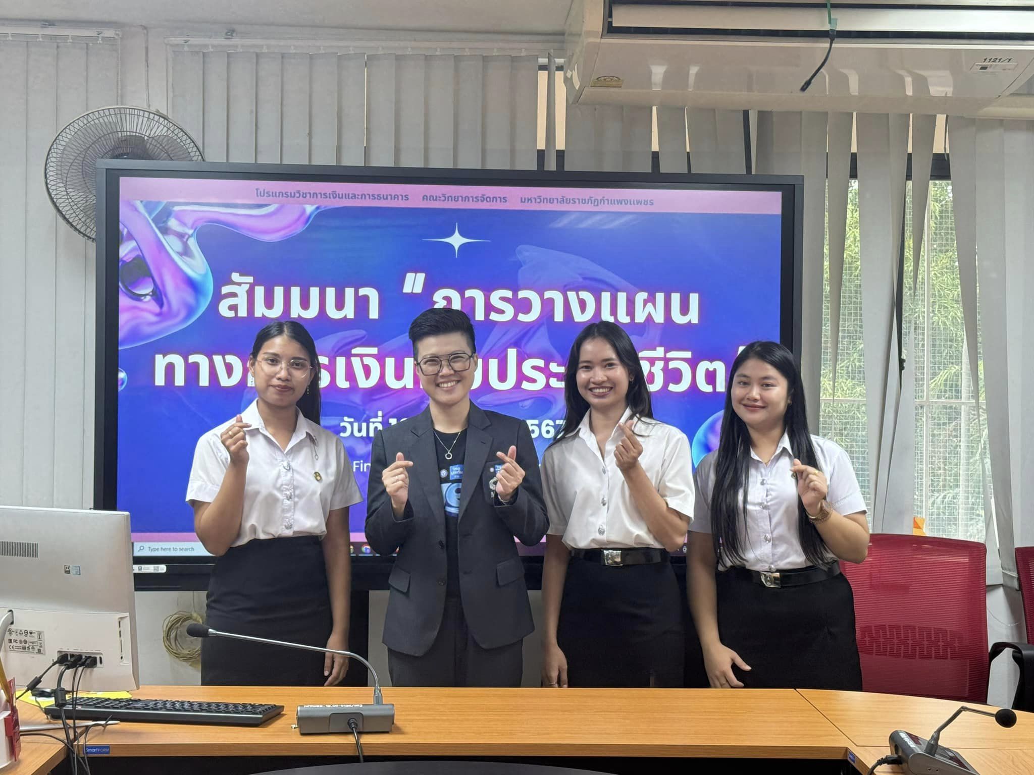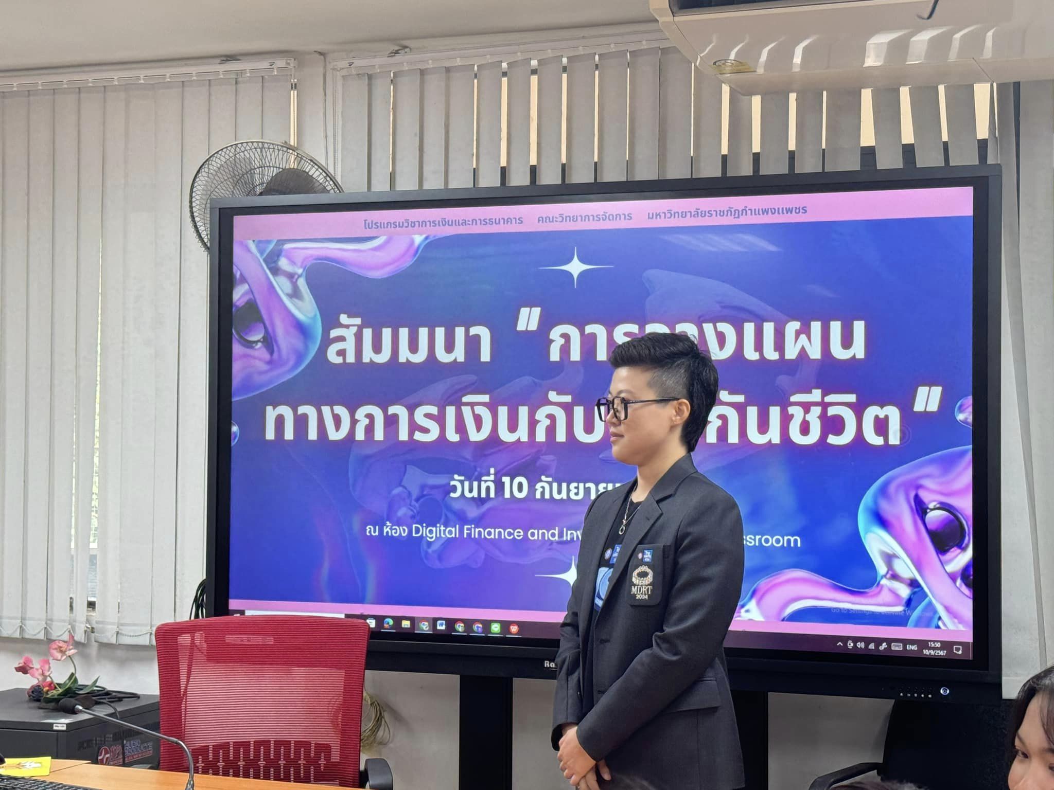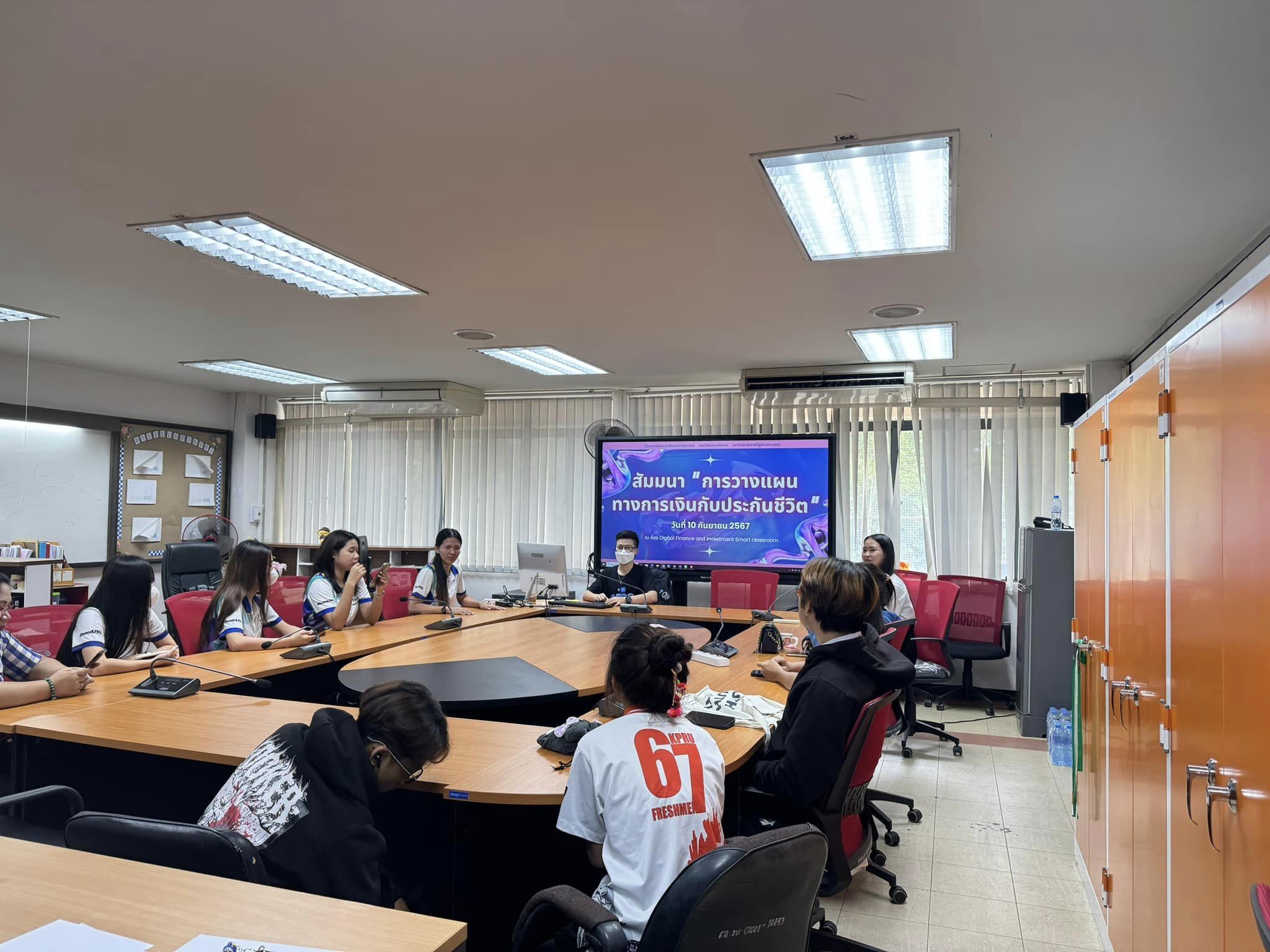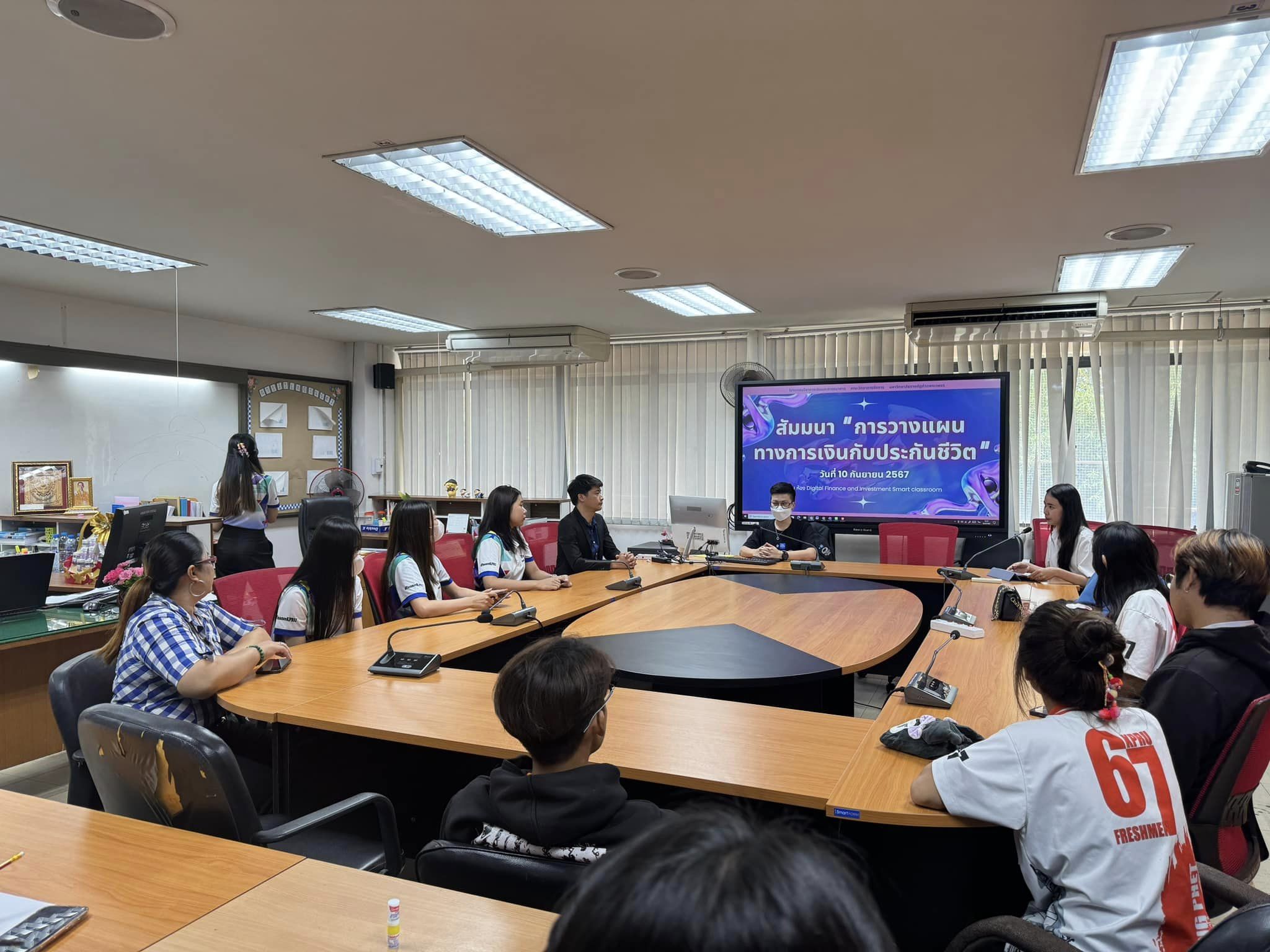 วันที่ 10 กันยายน 2567 เวลา 13.00 น. เป็นต้นไป วิชาเอกการเงินและการธนาคาร คณะวิทยาการจัดการ มหาวิทยาลัยราชภัฎกำแพงเพชร ได้จัดกิจกรรมสัมมนาการวางแผนทางการเงินกับประกันชีวิต โดยได้รับเกียรติจากวิทยากร คุณณฐพัชร์ เมธประสพสันต์ ผู้บริหารศูนย์ บริษัทไทยประกันชีวิต จำกัด (มหาชน) สาขากำแพงเพชร มาให้ความรู้เกี่ยวกับการวางแผนทางการเงินและการประกันชีวิตเบื้องต้นแก่นักศึกษาในครั้งนี้ ณ ห้อง Digital Finance and Investment Smart classroom คณะวิทยาการจัดการ มหาวิทยาลัยราชภัฎกำแพงเพชร