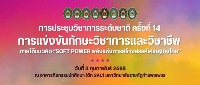 งานประชุมวิชาการครั้งที่ 14 คณะวิทยาการจัดการ มหาวิทยาลัยราชภัฏภาคเหนือ 8 แห่ง การแข่งขันทักษะวิชาการและวิชาชีพ ภายใต้หัวข้อซอฟท์พาวเวอร์ 14th National Management Sciences Conference https://fms.kpru.ac.th/event/NMSC14th